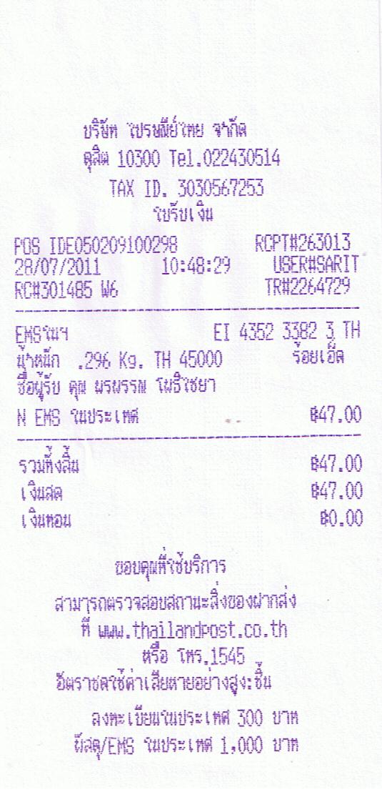 คุณ พรพรรณ > EI 435233823 TH ส่งสินค้าให้เรีบร้อยแล้วนะคะ โอกาศหน้าเชิญเลือกชื้อสินค้าเครื่องสำอางเกาหลีคุณภาพกับบริกาที่แสนประทับ ใจจากร้านของเราได้อีกนะคะขอบคุณมกาๆค่ะ