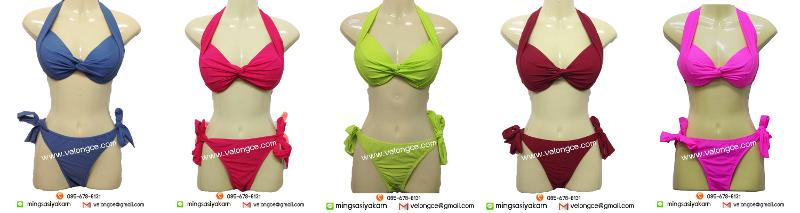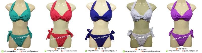 รุ่น F31415 บิกินี่สีพื้น ผูกคอ ผูกเอว ย่นตรงกลาง มีฟองน้ำและซับใน Size L-XL-XXL