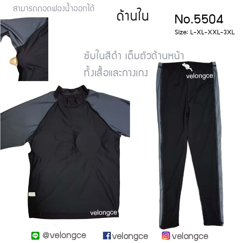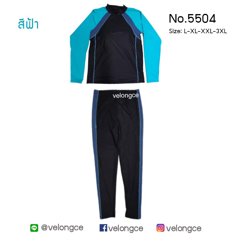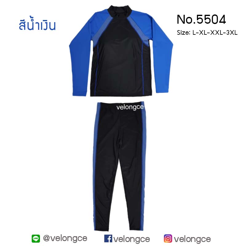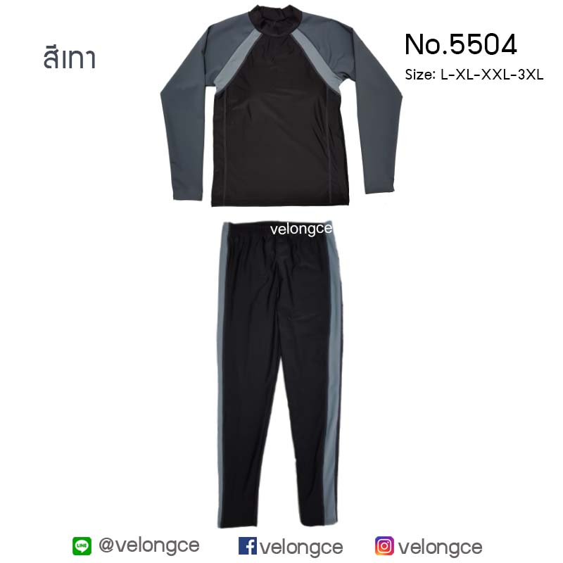 รุ่น 5504 ชุดว่ายน้ำ 2 ชิ้น แขนยาว ขายาว ใส่ได้ทุกเพศ size L-XL-XXL-3XL