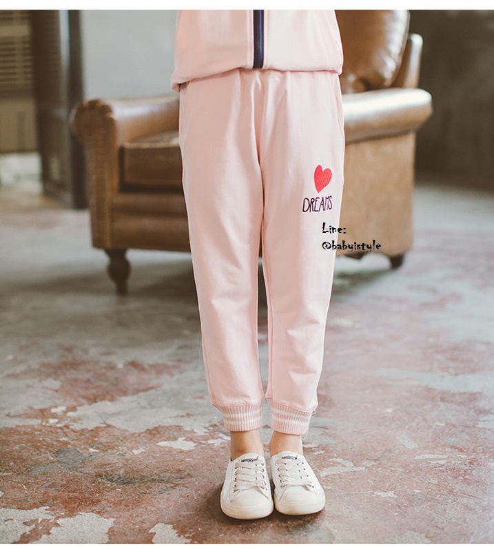 เด็กโต-กางเกงขายาวจั๊มพ์สีชมพู ปักหัวใจDREAMS มีกระเป๋าข้างไซส์ 150 รหัส KKL025A