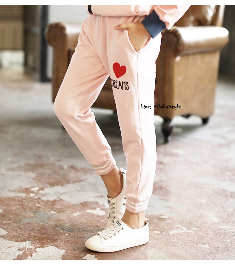 เด็กโต-กางเกงขายาวจั๊มพ์สีชมพู ปักหัวใจDREAMS มีกระเป๋าข้าง เอวยางยืด ผ้าดีมาก สวยน่ารัก ไซส์ 140/150/160/170