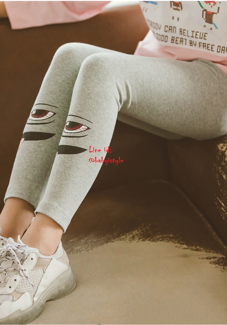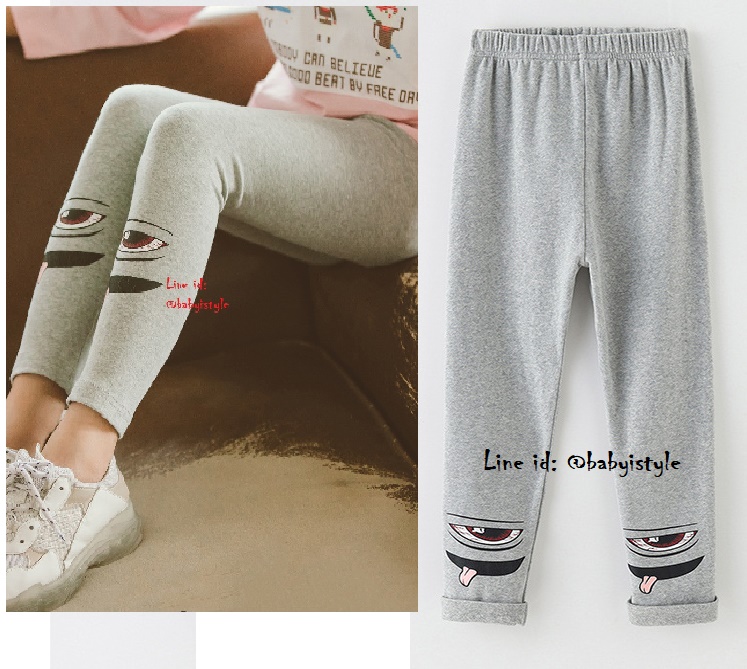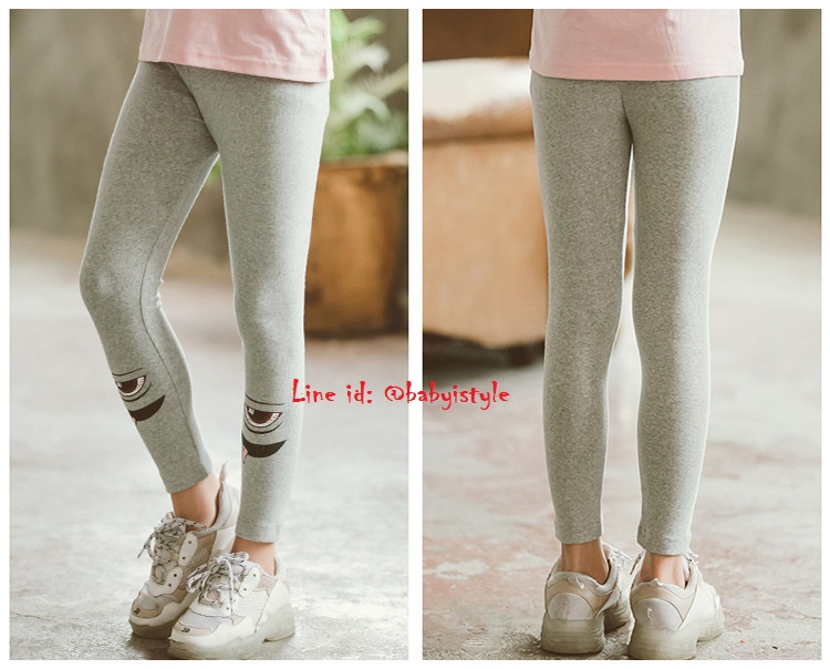 เด็กโต-เลกกิ้งขายาวสีเทา สกรีนรูปดวงตา เอวยางยืด ผ้ายืดหยุ่นได้ดี สวยเก๋น่ารัก