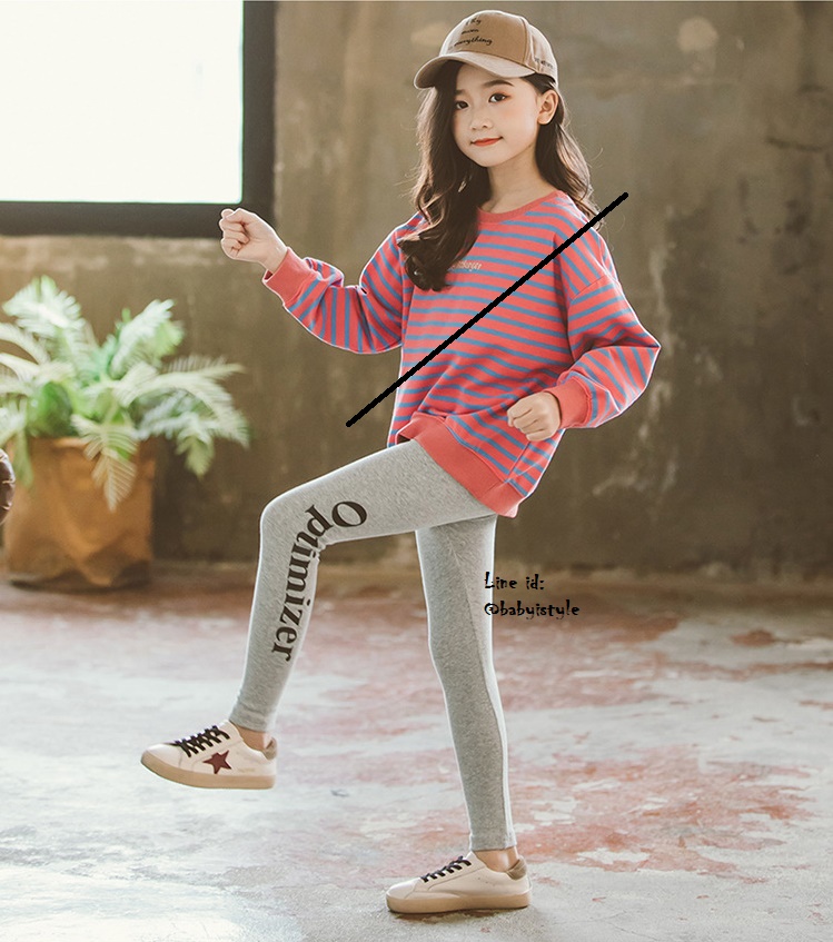 เด็กโต-เลกกิ้งขายาวสีเทา สกรีนอักษรOptimizer เอวยางยืด ผ้ายืดหยุ่นได้ดี สวยเก๋น่ารัก ไซส์ 140/150/160