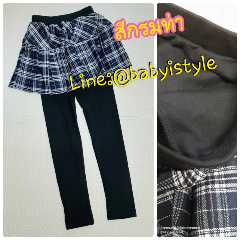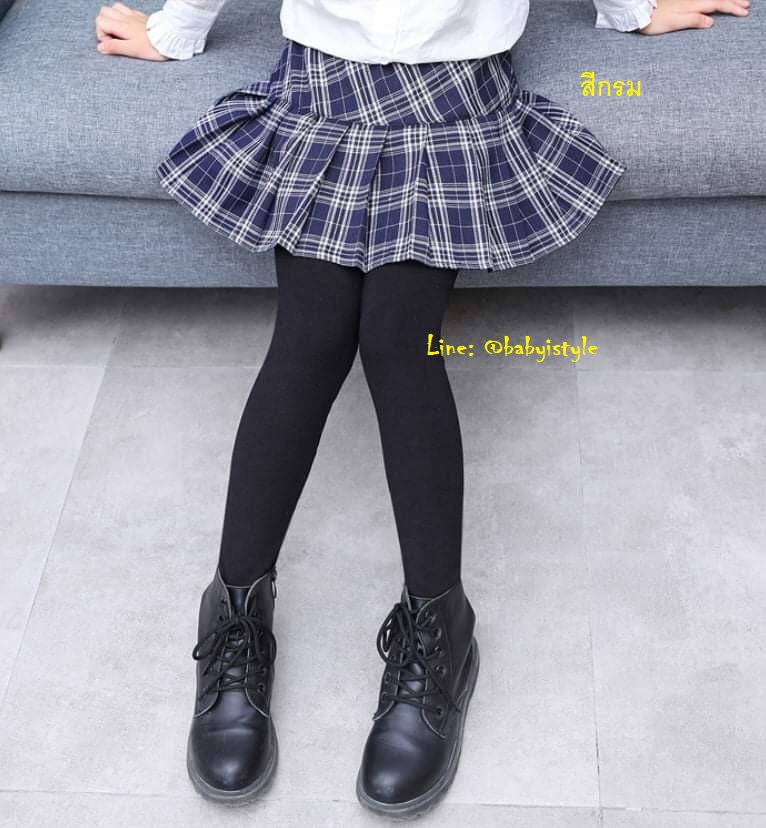เด็กโต-เลกกิ้งขายาวสีดำกระโปรงสก็อตสีกรมท่า เอวยางยืด ผ้ายืดหยุ่นได้ดี สวยเก๋น่ารัก