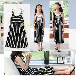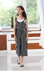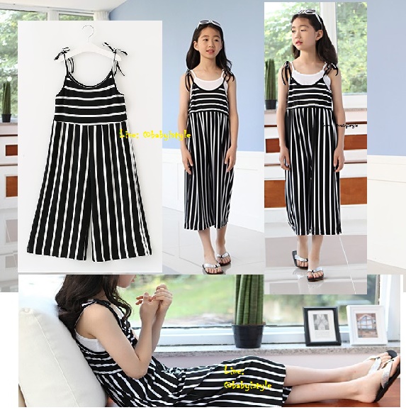 เด็กโต-ชุดจั๊มพ์สูทขายาวสายเดี่ยวแบบผูกริ้วสีขาวดำ(ไม่รวมเสื้อตัวใน) ผ้ายืดหยุ่นได้ทิ้งตัวดี งานสวยน่ารัก ไซส์ 130/140/150/160/170