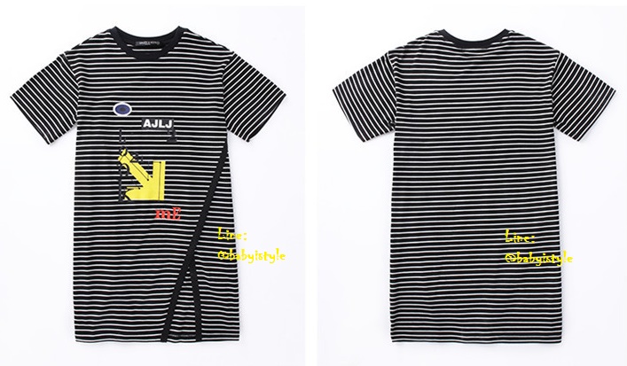 เด็กโต-เดรสแขนสั้นลายริ้วสีดำขาวLook2meทรงยาวผ่าหน้า