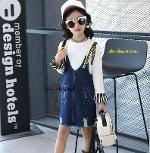 *Sales เด็กโต-เอี๊ยมกระโปรงยีนส์ แต่งขาดๆไซส์150รหัสKKK842