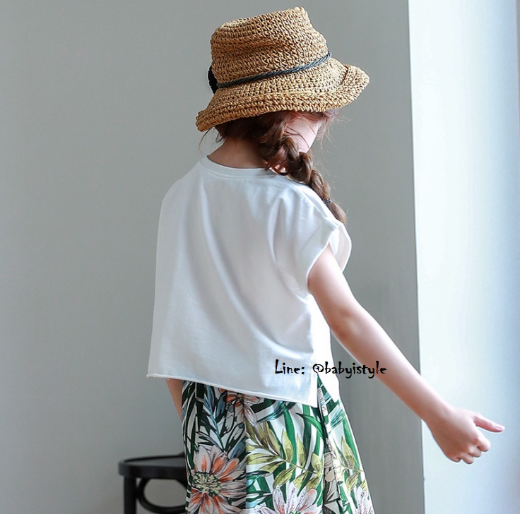 *Salesเด็กโต-เสื้อยืดOver Size ทรงครอปสั้นสีขาวลายต้นไม้POTS แขนสั้นพับเบิ้ลไซส์ 140/160 รหัส KKK923
