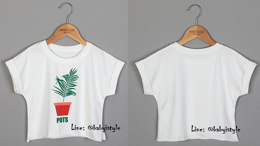 เด็กโต-เสื้อยืดOver Size ทรงครอปสั้นสีขาวลายต้นไม้POTS แขนสั้นพับเบิ้ล ผ้ายืดหยุ่นได้ งานสวยเก๋ค่ะ