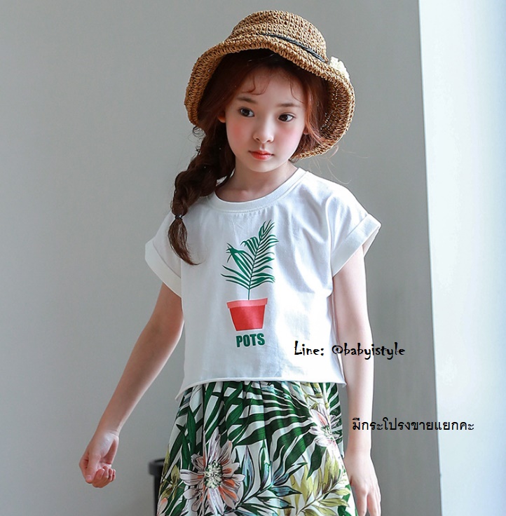 เด็กโต-เสื้อยืดOver Size ทรงครอปสั้นสีขาวลายต้นไม้POTS แขนสั้นพับเบิ้ล ผ้ายืดหยุ่นได้ งานสวยเก๋ค่ะ ไซส์ 140/150/160