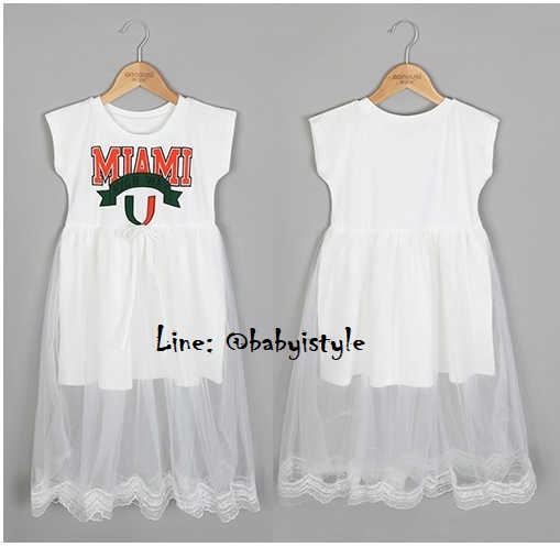 เด็กโต-เดรสยาวพรีเมี่ยมสีขาวแขนล้ำสกรีน MIAMI ต่อกระโปรงผ้ามุ้งสีขาวชายลูกไม้ งานสวยเริ่ด