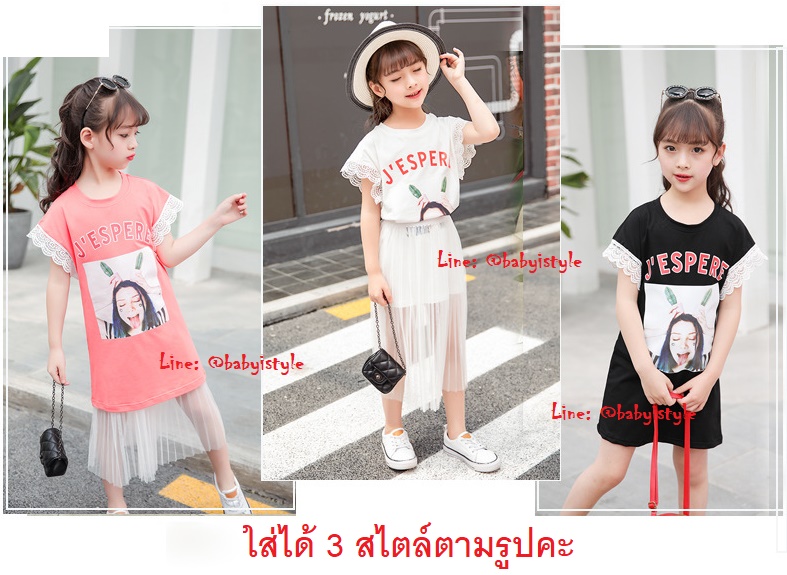 เด็กโต-ชุด2ชิ้นเดรสแขนกุดJ'ESPERE สีขาวระบายลูกไม้