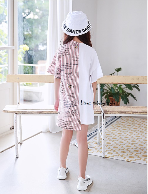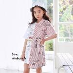 *Salesเด็กโต-เดรสแขนสั้น2สไตล์คอยืดสีขาว+คอเชิ้ตลายริ้วแดงสกรีนอักษร ไซส์ 130 รหัส KKL089