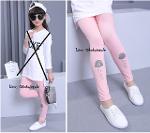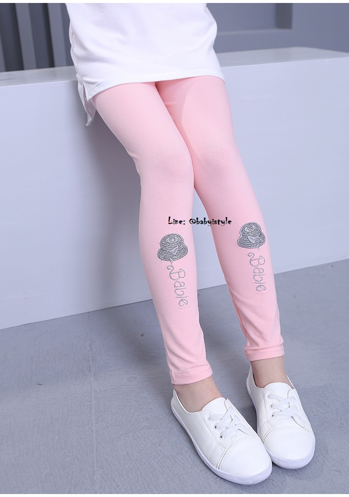 เด็กโต-เลกกิ้งขายาวสีชมพู ปักหมวก เอวยางยืด ผ้ายืดหยุ่นได้ดี สวยน่ารัก