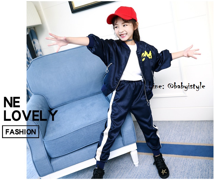 เด็กโต-ชุด2ชิ้นเสื้อแจ็คเก็ตแขนยาวจั๊มพ์สีกรมท่าซิปหน้า มีกระเป๋าข้างซิป มีซับใน (ไม่มีเสื้อตัวใน)หลังสกรีนLOVEME