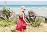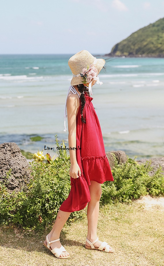 เด็กโต-เดรสสายเดี่ยวสีแดงเลือดนกผูกสายคล้องคอไปด้านหลัง ช่วงอกยางยืด หน้าสั้น หลังยาว งานสวยเซ็กซี่ ไซส์ 140/150/160