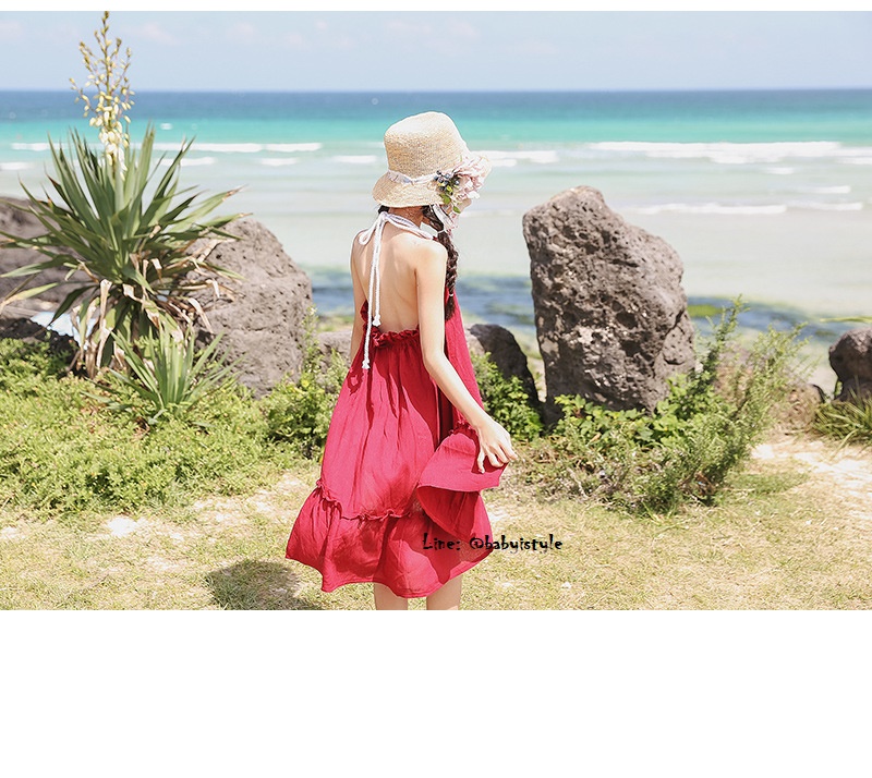 เด็กโต-เดรสสายเดี่ยวสีแดงเลือดนกผูกสายคล้องคอไปด้านหลัง ช่วงอกยางยืด หน้าสั้น หลังยาว งานสวยเซ็กซี่