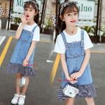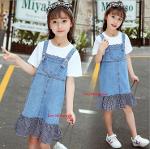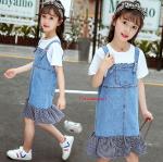*Sales เด็กโต-ชุด2ชิ้นเสื้อสีขาวLOVE FUN COOL PEOPLE SMIL+เอี๊ยมกระโปรงยีนส์ไซส์ 140 รหัส KKK943