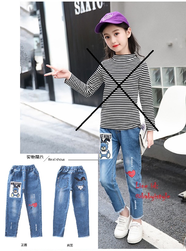 *Sales เด็กโต-กางเกงยีนส์ขายาวเดฟสกรีนหมี ชายปล่อย(ผ้าไม่ยืดนะค่ะ)ไซส์ 140/150/160 รหัส KKL100
