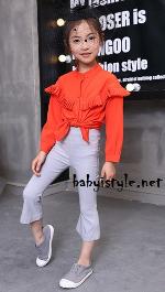 เด็กโต-กางเกงเลกกิ้งขากระดิ่ง5ส่วนสีเทา มีกระเป๋าหลัง