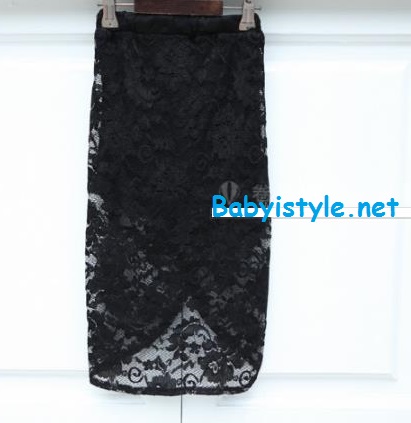 กระโปรงผ้าลูกไม้สีดำ ผ่าเว้ากลาง ซับในด้านในจะสั้นกว่า เอวยางยืด ไซส์ 7/9/11/13/15