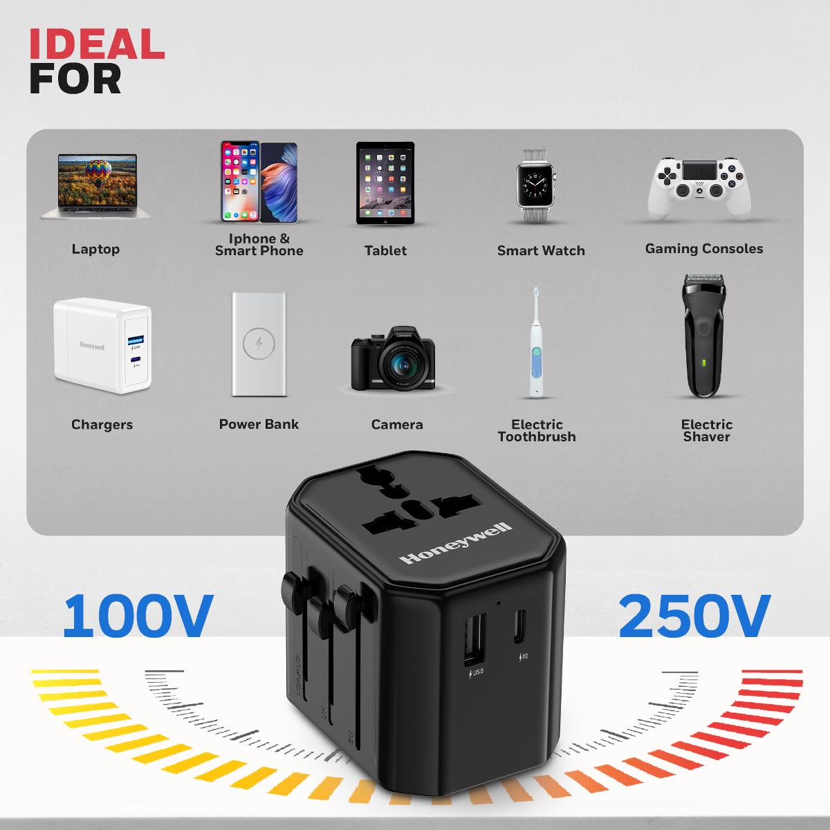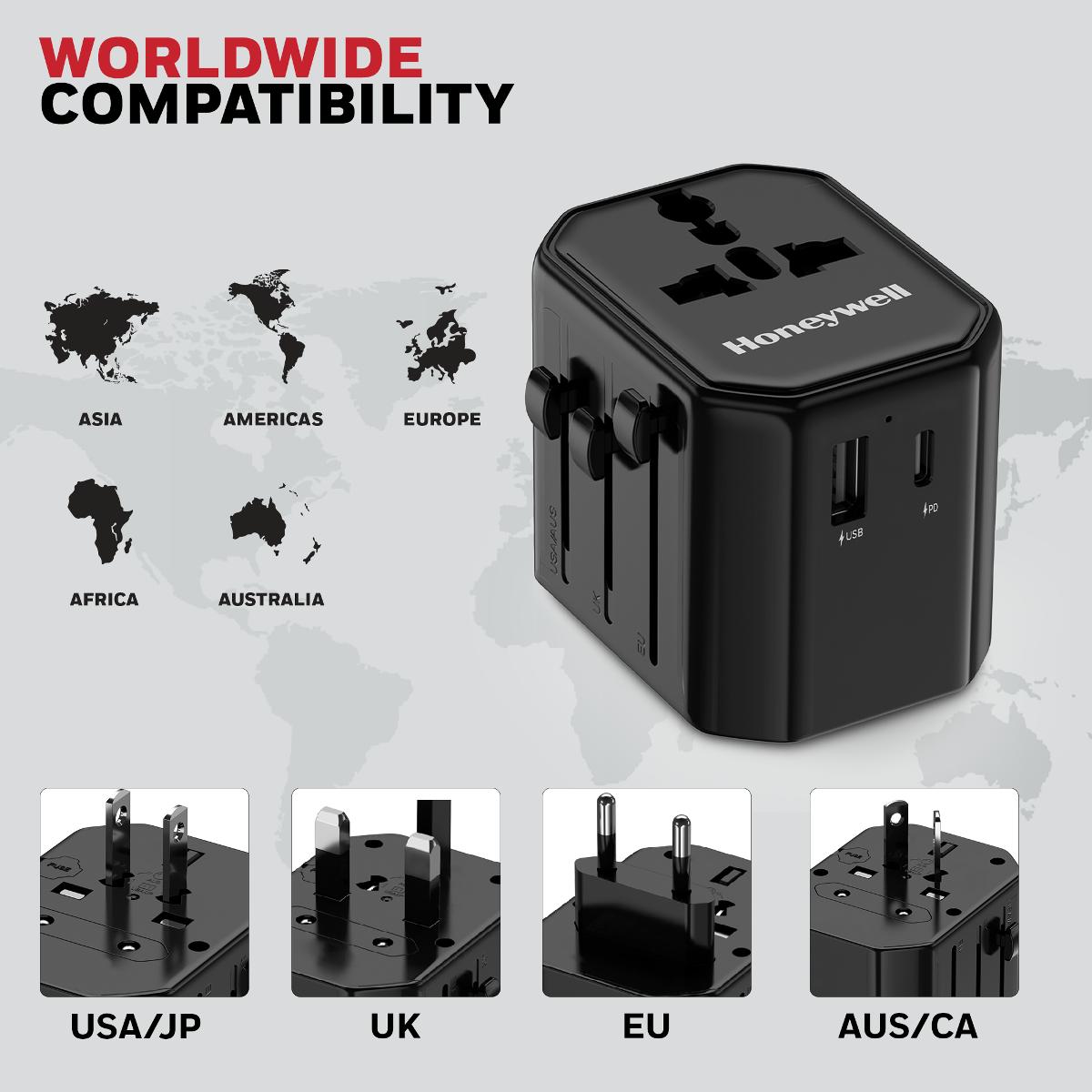 ปลั๊กไฟ Universal Honeywell Universal World Travel Adapter 12W - Black HC000062CHGTRVBLK12W