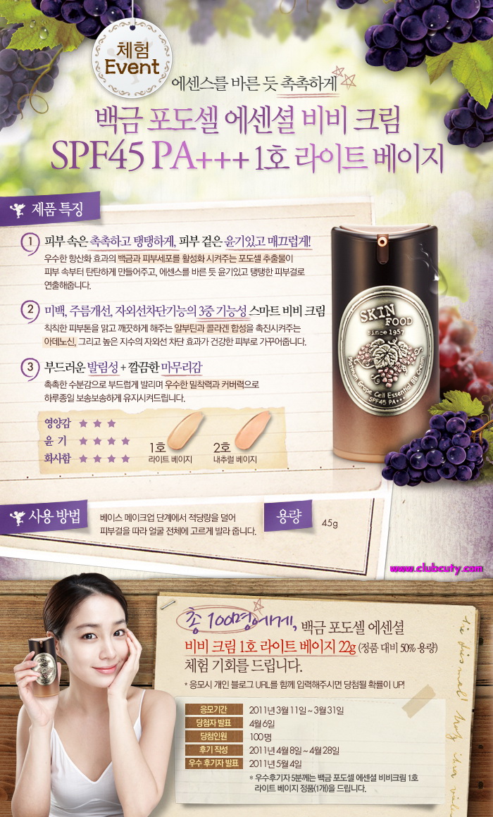 อีเมลล์: knight_marketing@hotmail.comSkinfood Platinum Grape Cell Essential BB Cream Spf 40 Pa+++