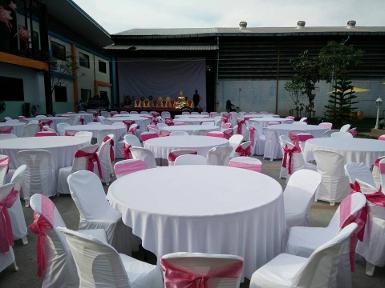 ให้ยืมฟรีชุดโต๊ะเก้าอี้พร้อมผ้าคลุมโต๊ะ (ผ้ากำมะหยี่อย่างดี) สำหรับแขกในงานเลี้ยงของคุณ ให้ยืมฟรีเพราะเราตั้งใจเป็นส่วนหนึ่งที่ทำให้งานของคุณสมบูรณ์ยิ่งขึ้น ด้วยต้นทุนที่ประหยัดที่สุดเท่าที่เราสามารถดูแลให้คุณได้ หมายเหตุ ไม่รวมผ้าคลุมเก้าอี้และโบว์ ...
