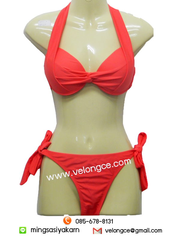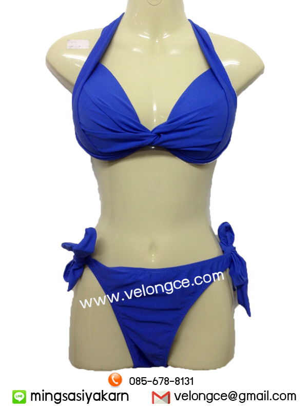 รุ่น F31415 บิกินี่สีพื้น ผูกคอ ผูกเอว ย่นตรงกลาง มีฟองน้ำและซับใน Size L-XL-XXL
