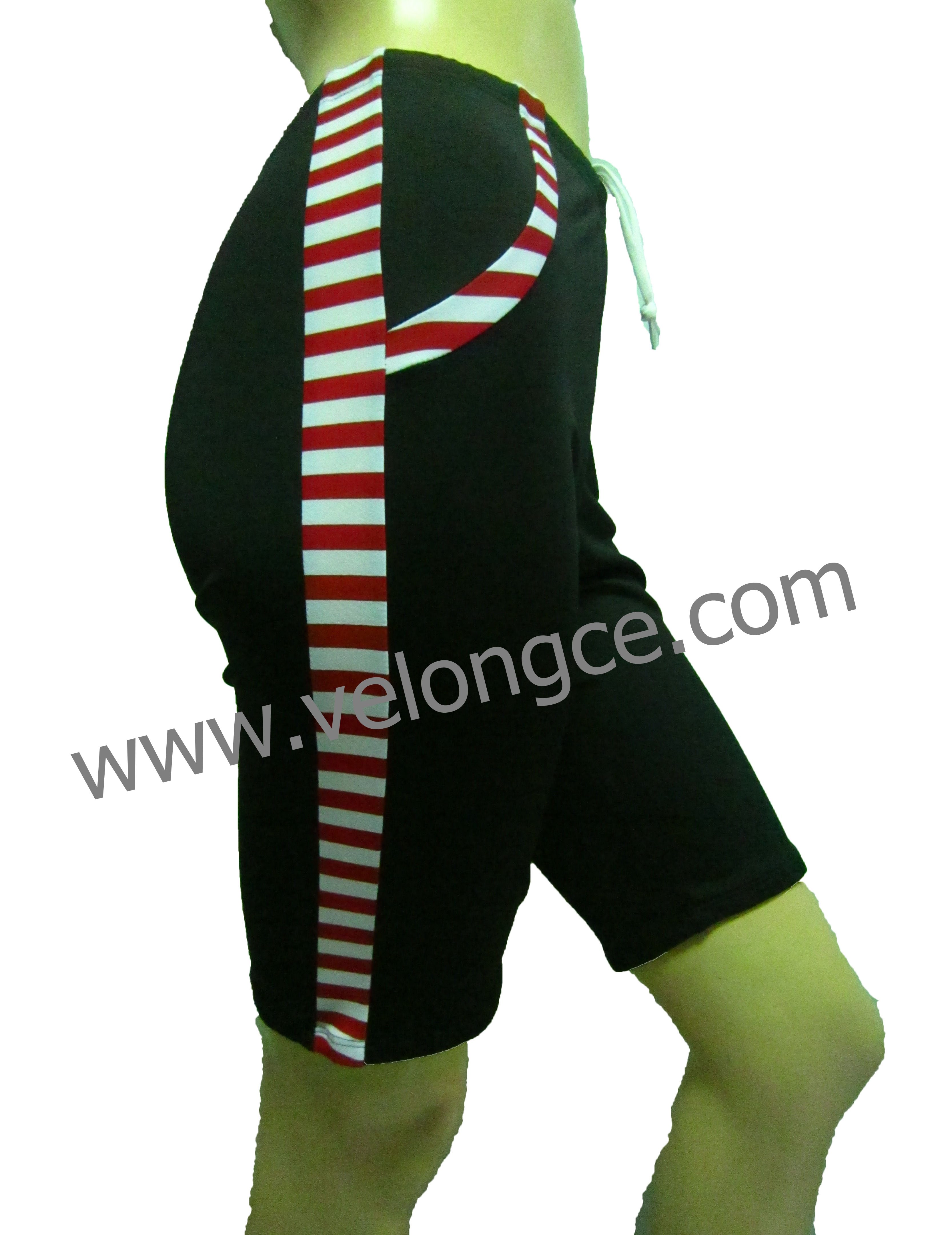 รหัสสินค้า 4L-02 กางเกงว่ายน้ำใส่ได้ท้งชายหญิง ขายาว 3 ส่วน สีดำมีแถบสีเป็นลาย in trend มีซับในและเชือกผูก ผ้าอย่างดี ไซซ์ L, XL, XXL