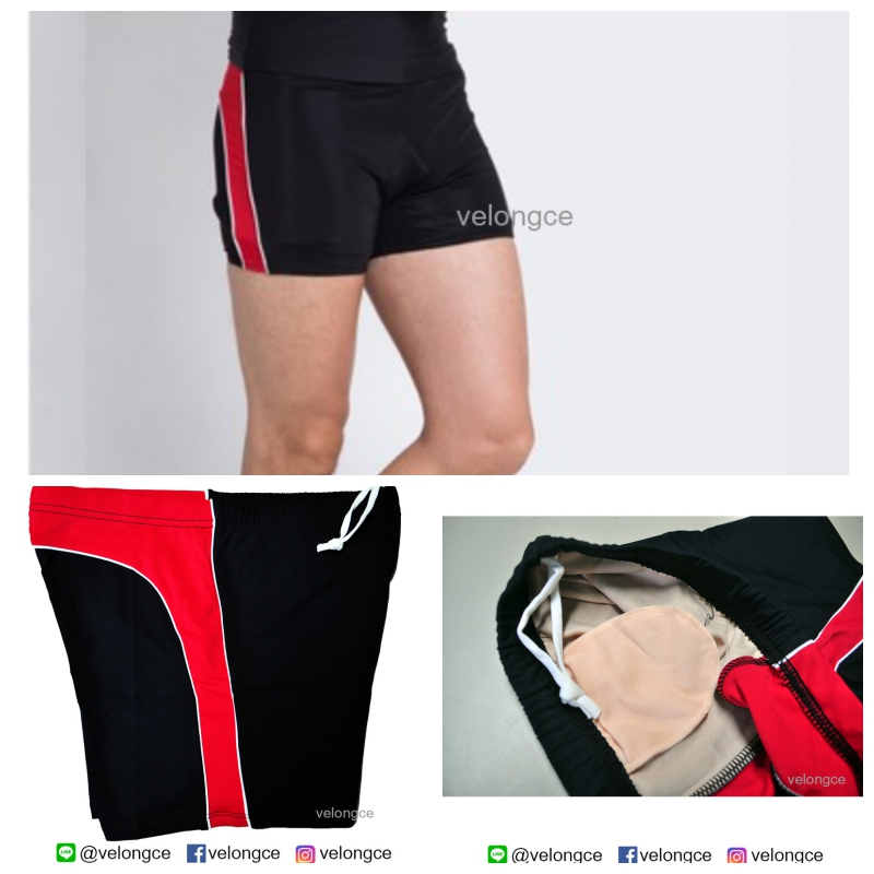กางเกงว่ายน้ำขาสั้น มีแถบสีด้านข้างและแถบโค้งด้านหลัง