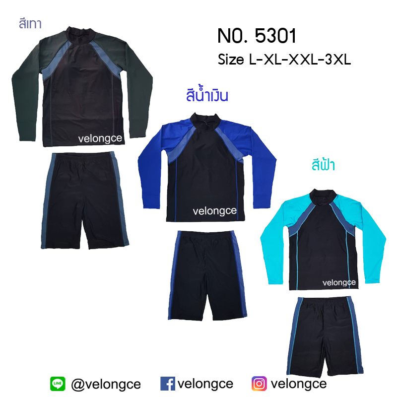 รุ่น 5301 ชุดว่ายน้ำแขนยาว ขาสั้น 2 ชิ้น ใส่ได้ทุกเพศ size L-XL-XXL-3XL