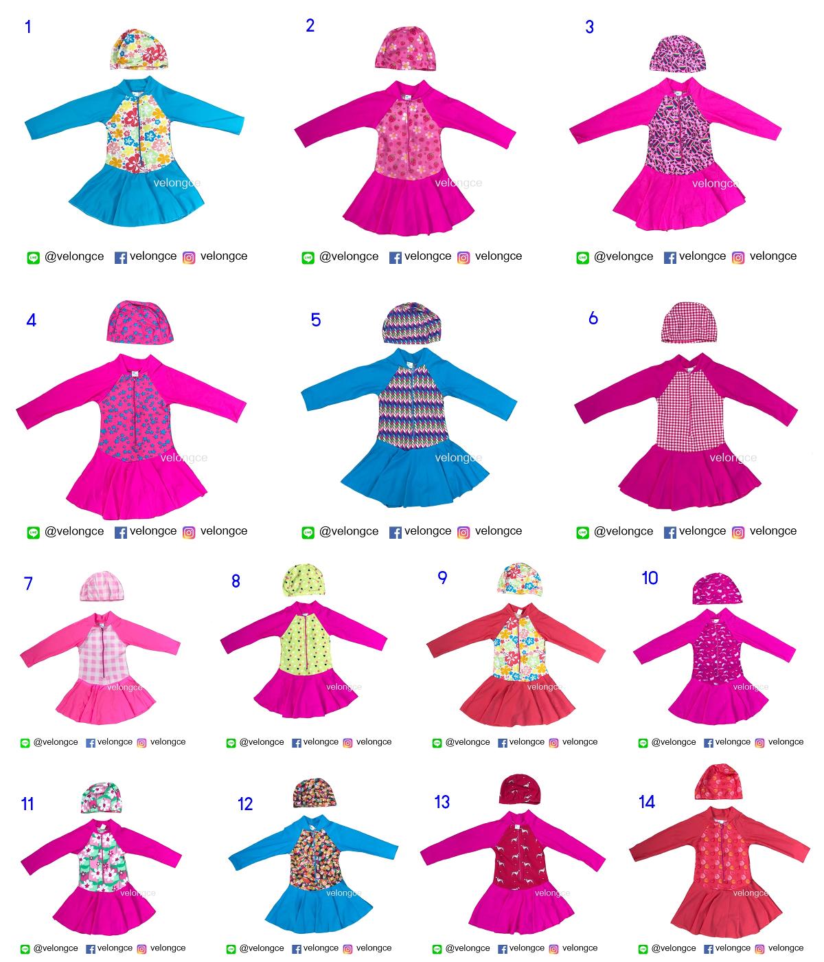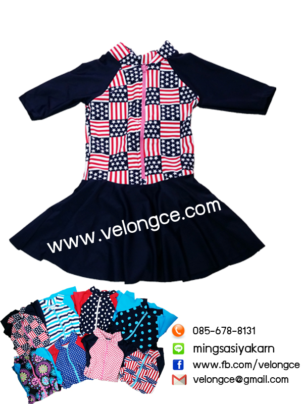 ชุดว่ายน้ำเด็กหญิงชิ้นเดียวแขนยาวซิปลายน่ารักมีกระโปรงคลุม มีหลายสีให้เลือกสรร มีซับใน ไซส์ 8 - 18