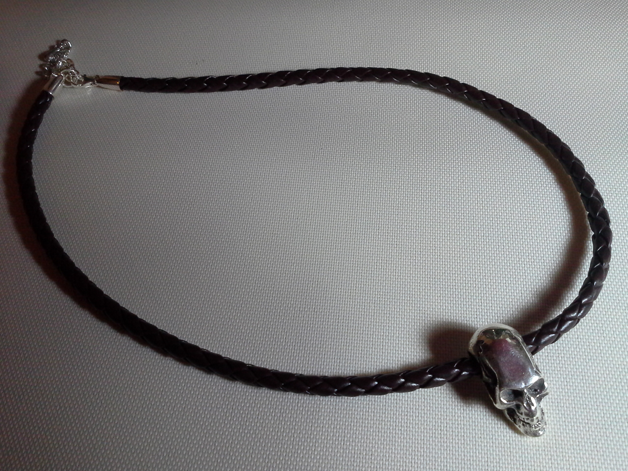 สร้อยเงินกระโหลก เงินคุณภาพดี สายหนังปราณีต คุณภาพส่งออก ขายดีทีมฮาเล่ย์และบิกไบค์ สร้อยคอสวย