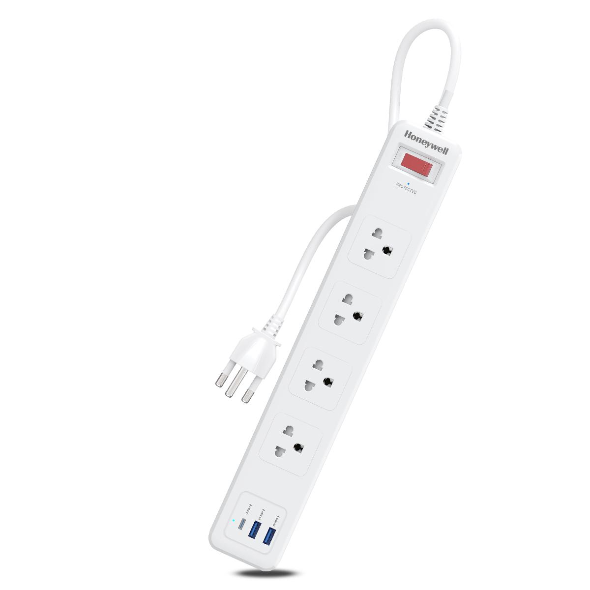 ปลั๊กไฟ 3 ช่อง Honeywell 4 Outlet Surge Protector with 1xType C & 2xUSB HC000043/SRG/1.8M/WHT/4/2U/PD20W/TH (รับประกัน 3ปี)