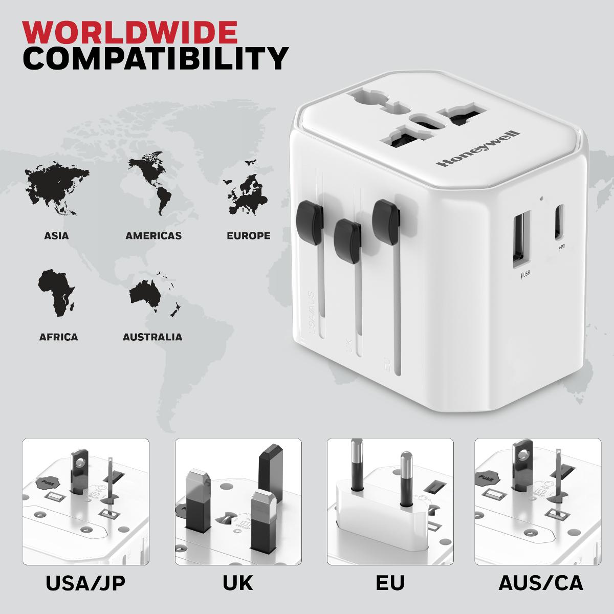 Honeywell Universal World Travel Adapter 38W - White HC000063CHGTRVWHT38W
