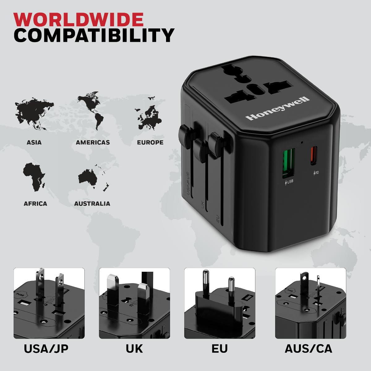 Honeywell Universal World Travel Adapter 38W - Black HC000064/CHG/TRV/BLK/38W