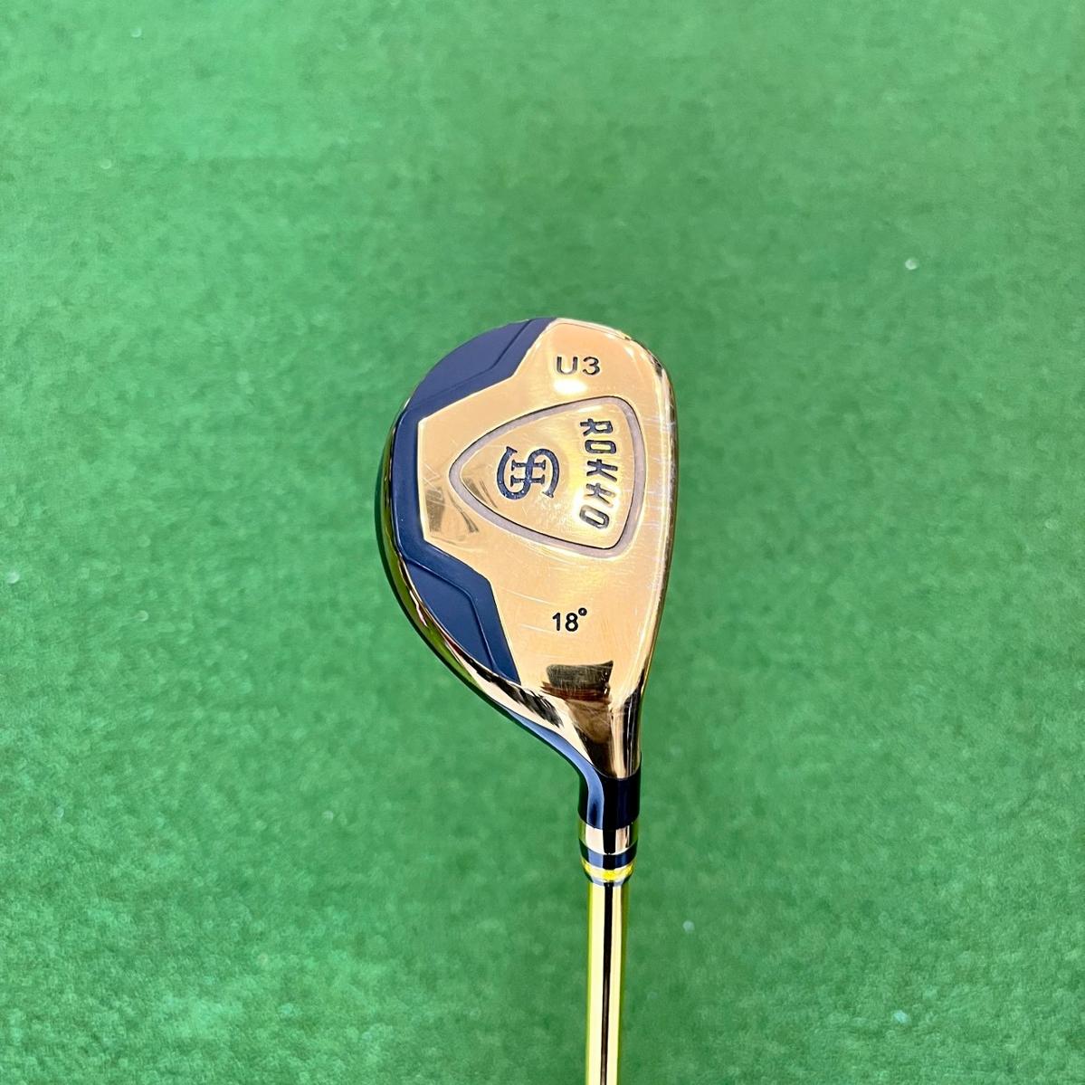 HYBRID ROKKO SH H3 ก้าน ROKKO HMG wt50 FLEX R LOFT 18 หน้าไม้ออกแบบให้มีความหนาบางไม่เท่ากัน ช่วยให้ความเร็วลูกมีความสม่ำเสมอจากทั่วทั้งหน้าไม้ หน้า (Face) ผลิตด้วย Beta Titanium 15-333 วัสดุชั้นดีจากประเทศญี่ปุ่น และมีการเชื่อมต่อแผ่นหน้าแบบ Plasma ทำใ