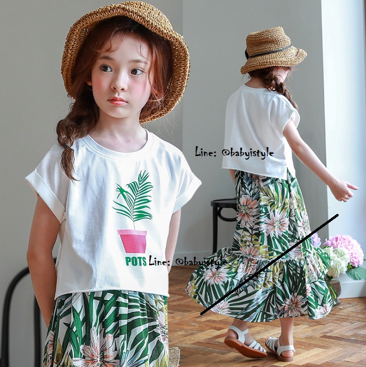 เด็กโต-เสื้อยืดOver Size ทรงครอปสั้นสีขาวลายต้นไม้POTS แขนสั้นพับเบิ้ล ผ้ายืดหยุ่นได้ งานสวยเก๋ค่ะ ไซส์ 140/150/160