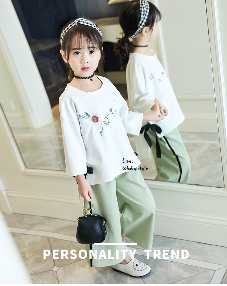 เด็กโต-เฉพาะกางเกงขาบาน 5-6 ส่วนสีเขียวชานมแต่งแถบข้าง เอวยางยืด มีกระเป๋า 2 ข้าง ผ้าดีมาก งานสวยน่ารัก ไซส์ 140/150/160
