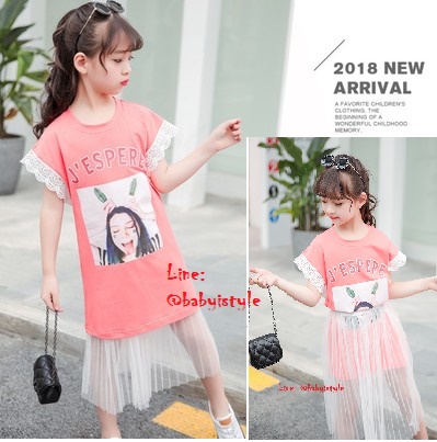เด็กโต-ชุด2ชิ้นเดรสแขนกุดJ'ESPEREสีชมพูโอรสระบายลูกไม้+กระโปรงผ้าตาข่ายสีขาวอัดพลีท ใส่ได้ 3 แบบ งานสวยน่ารักชิคๆ ไซส์ 140/150/160
