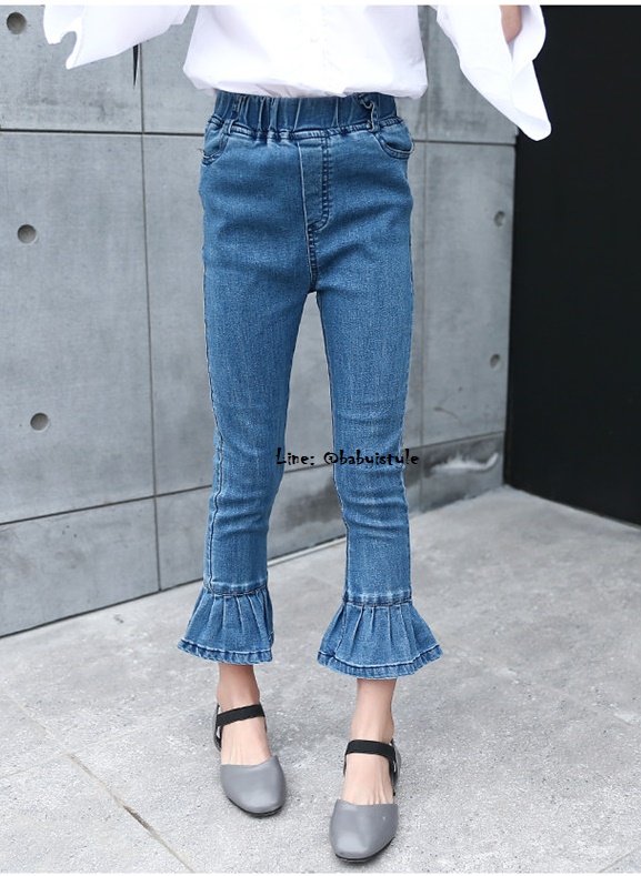 เด็กโต-กางเกงยีนส์สกินนี่ขาเดฟปลายกระดิ่งทวิส ขอบเอวยางยืด มีกระเป๋าหลัง งานสวยน่ารัก ไซส์ 140/150/160