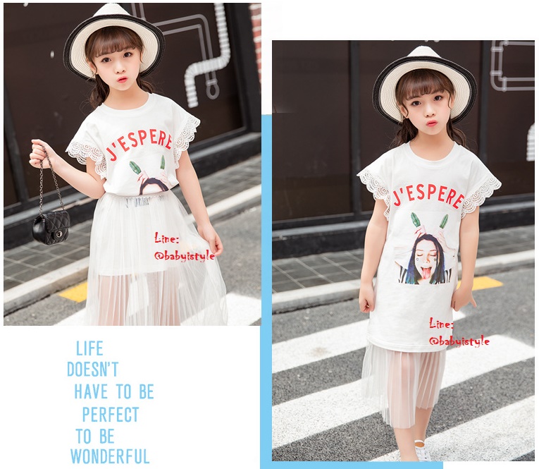 เด็กโต-ชุด2ชิ้นเดรสแขนกุดJ'ESPEREสีขาวระบายลูกไม้+กระโปรงผ้าตาข่ายสีขาวอัดพลีท ใส่ได้ 3 แบบ งานสวยน่ารักชิคๆ ไซส์ 140/150/160