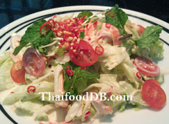 ส่วนผสมและเครื่องปรุง ยำสลัดปูอัด 1. ปูอัด 3-5 แท่ง 2. ผักกาดแก้ว 1 จาน 3. มะเชือเทศราชินี 5 ผล 4. แตงกวา 1 ผล 5. หอมแดง ผักโต้วเหมี่ยว และ ใบสะระแหน่ อย่างละเล็กน้อย 6. สลัดครีม 4 ช้อนโต๊ะ 7. พริกขี้หนู 1-2 เม็ด 8. น้ำมะนาว 3-4 ช้อนโต๊ะ 9. น้ำปลา 2 ช้อนโต๊ะ 10. ซอสปรุงรส 1 ช้อนชา วิธีทำ 1. ล้างผักสลัดต่างๆ ให้สะอาด พักไว้ให้สะเด็ดน้ำ จากนั้นตัดผักกาดแก้ว หั่นแตงกวา เป็นชิ้นพอคำ มะเขือเทศราชินีผ่าครึ่ง เคล้าให้เข้ากันในชามผสมสลัด เบาๆมือหน่อยนะคะ ระวังผักจะช้ำ (ความจริงเรื่องผักนี่ไม่มีข้อจำกัดน...