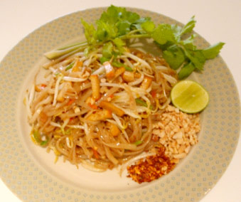 เครื่องปรุง - เส้นจันท์ หรือ ก๋วยเตี๋ยวเส้นเล็ก 720 กรัม , แช่น้ำให้นุ่มประมาณ 4 ชั่วโมงหรือในน้ำอุ่น 30 นาที - กระเทียม 1-2 กลีบ สับให้ละเอียด , หอมแดง 1 หัว , หั่นบางๆ , ไข่ไก่ 2 ฟอง , น้ำปลา 1 ช้อนโต๊ะ - น้ำมะขามเปียก 2 ช้อนโต๊ะ , น้ำตาลปี๊บ 2-3 ช้อนโต๊ะ , น้ำมันพืช 3 ช้อนโต๊ะ , เต้าหู้ทอด 3 ช้อนโต๊ะ - หัวไชโป๊หวาน 2 ช้อนโต๊ะ , ถั่วงอกสด 1-2 ถ้วย , ใบกุ้ยช่าย ต้นหอม 3 -4 ต้น, ถั่วลิสงคั่วบดละเอียด 3 ช้อนโต๊ะ, มะนาว 1 ลูก , หั่น 4 ซีก เครื่องปรุงน้ำซอสปรุงรส - น้ำมะขามเปียก 6 ช้อนโต๊ะ - ซอสมะเ...